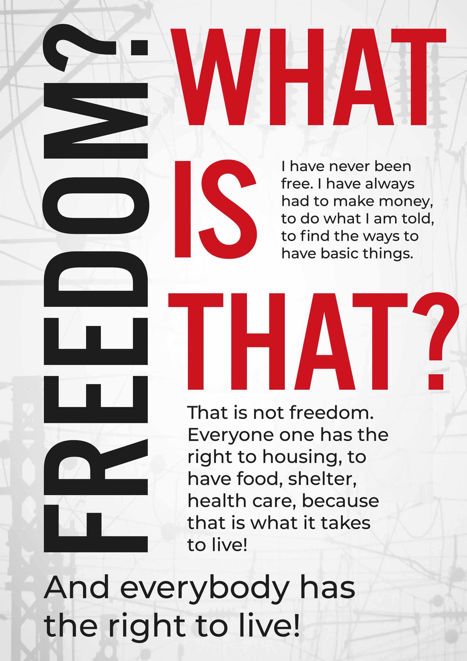 That is not freedom. Everyone one has the right to housing, to have food, shelter, health care, because that is what it takes to live!